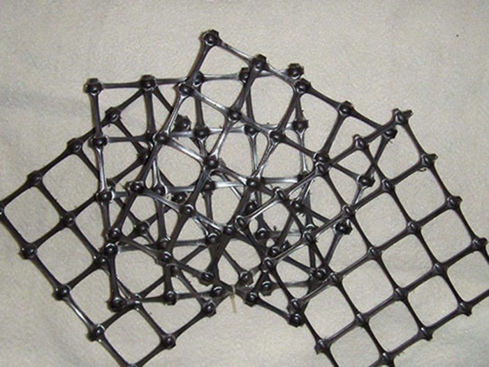 有时配合自粘感压胶和表面沥青浸渍处理,使格栅和沥青路面紧密结合成一体。由于土石料在土工格栅网格内互锁力增高,它们之间的摩擦系数显著增大(可达08~10),土工格栅埋入土中的抗拔力,由于格栅与土体间的摩擦咬合力较强而显著增大,因此它是一种很好的加筋材料。同时土工格栅是一种质量轻,具有一定柔性的塑料平面网材,易于现场裁剪和连接,也可重叠搭接,施工简便,不需要特殊的施工机械和专业技术人员。